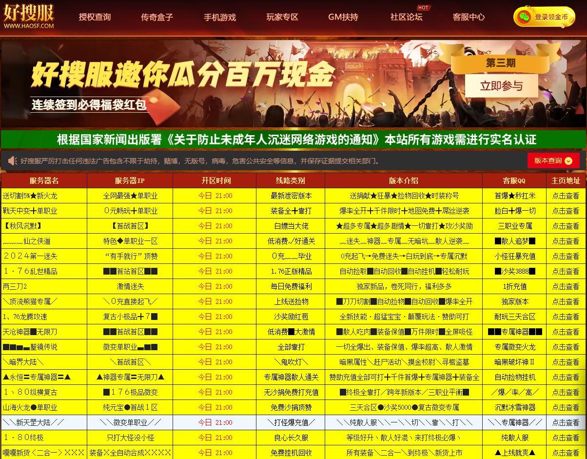 进二十年的老牌一线传奇私服发布站,无论是人气和广告量都是行业中的佼佼者。