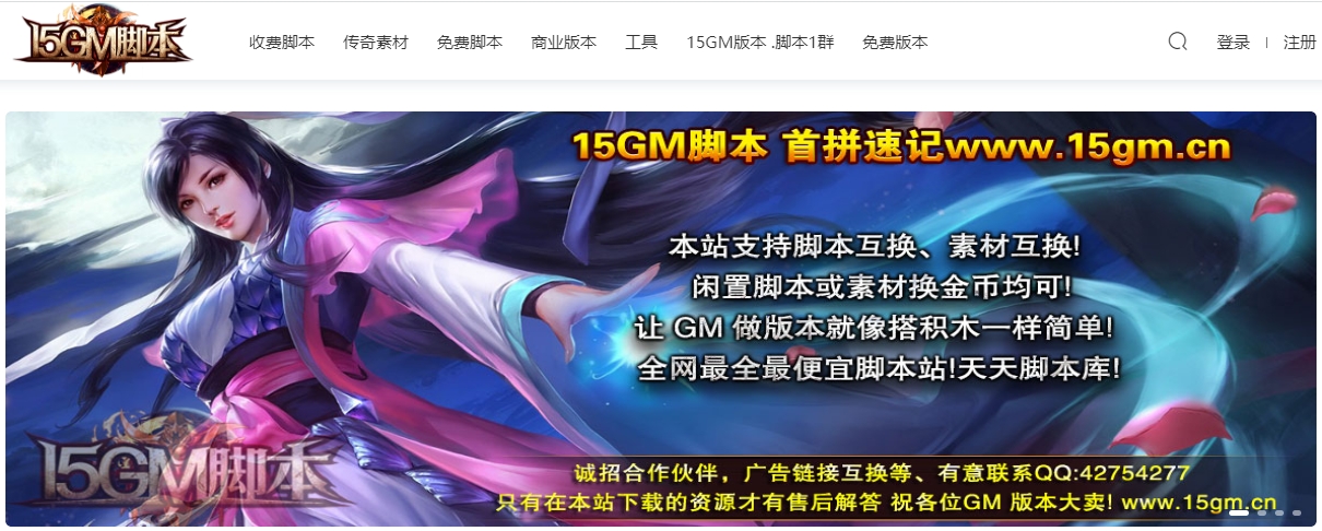 15GM脚本库是一个专注于传奇脚本的网站,站内收录各类传奇 收费脚本、传奇素材、免费脚本、传奇工具等资源,供广大GM下载使用。是业内少量专注于分享传奇脚本的GM资源站点。